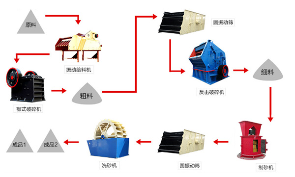 在砂石料生產(chǎn)線上,所需的設(shè)備主要有振動給料機(jī)、鄂式破碎機(jī)、反擊式破碎機(jī)(或圓錐破碎機(jī))、立式板錘式制砂機(jī)、輸送帶、振動篩以及除塵設(shè)備??筛鶕?jù)不同的物料大小、產(chǎn)量、成品大小增減設(shè)備,也有大、中、小型的設(shè)備滿足客戶不同的生產(chǎn)需求。不同的生產(chǎn)線配置價格也差別很大。
